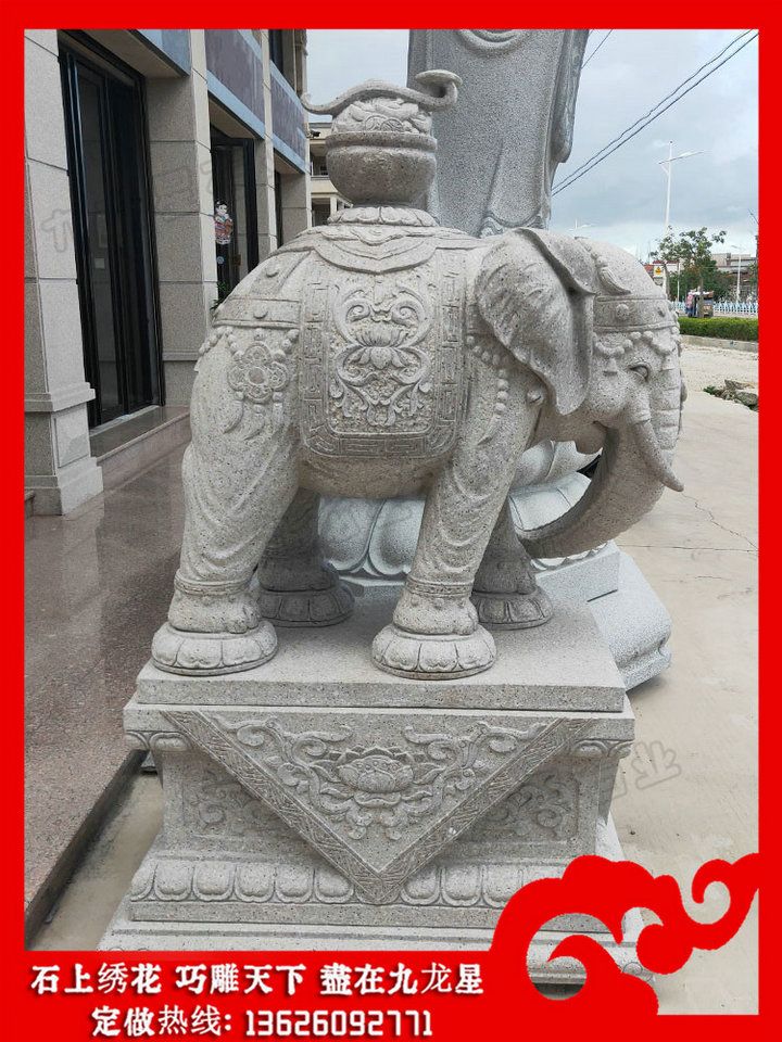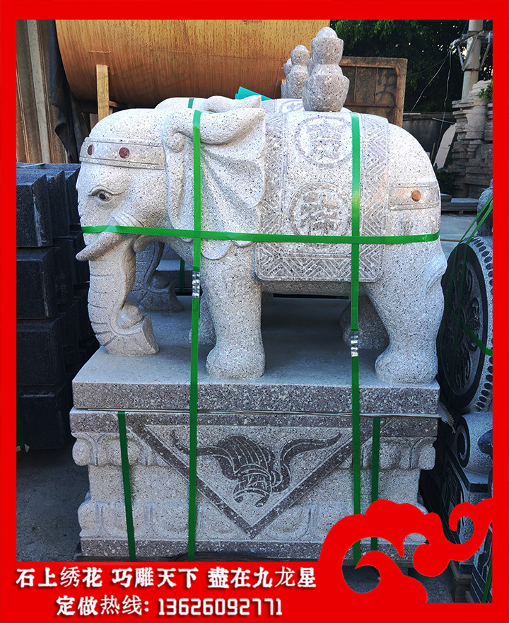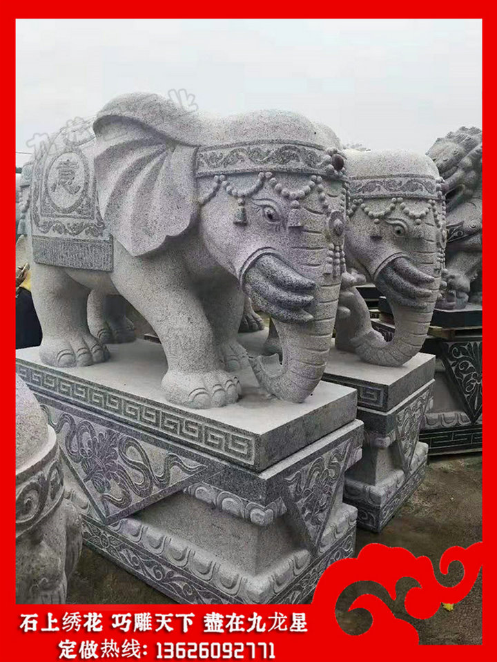 石材雕刻大象(石雕大象大小與價格 門口石雕大象雕刻)——九龍星石業(yè),廠家批發(fā)定做。 門口石雕大象的寓意有多種,主要是根據(jù)石雕大象的雕刻造型以及擺放場景來辨認(rèn)其主要是側(cè)重哪方面。在鄉(xiāng)下農(nóng)村,會在村口樓牌前擺放石雕大象有鎮(zhèn)宅護(hù)院,辟邪擋煞的寓意。在鬼神說中,可以將妖鬼邪氣擋在外面,保佑村里人的平安;在家居住宅門口擺放一對石雕大象,代表著吉祥平安,萬事如意。在寫字樓或是酒店入口擺放,一是擺放一對吉象迎賓,讓客人有賓至如歸的感覺。