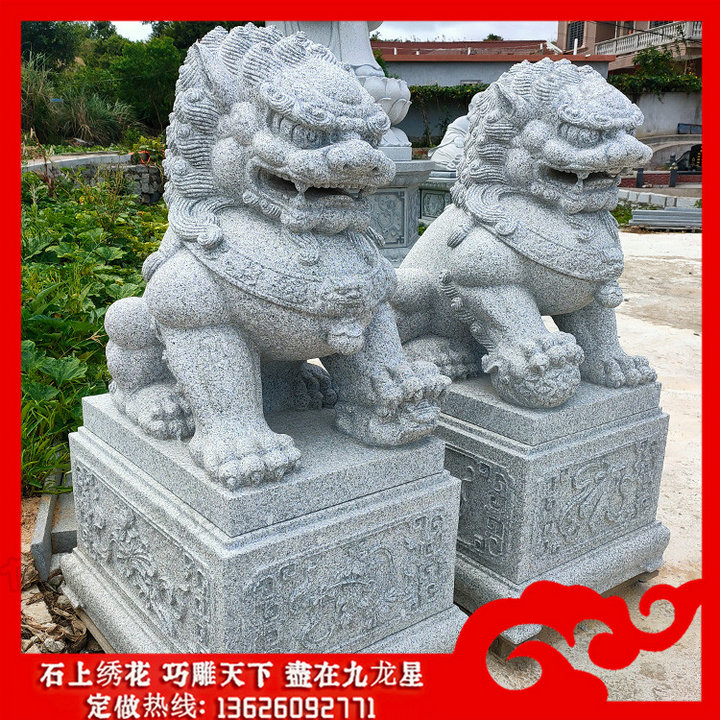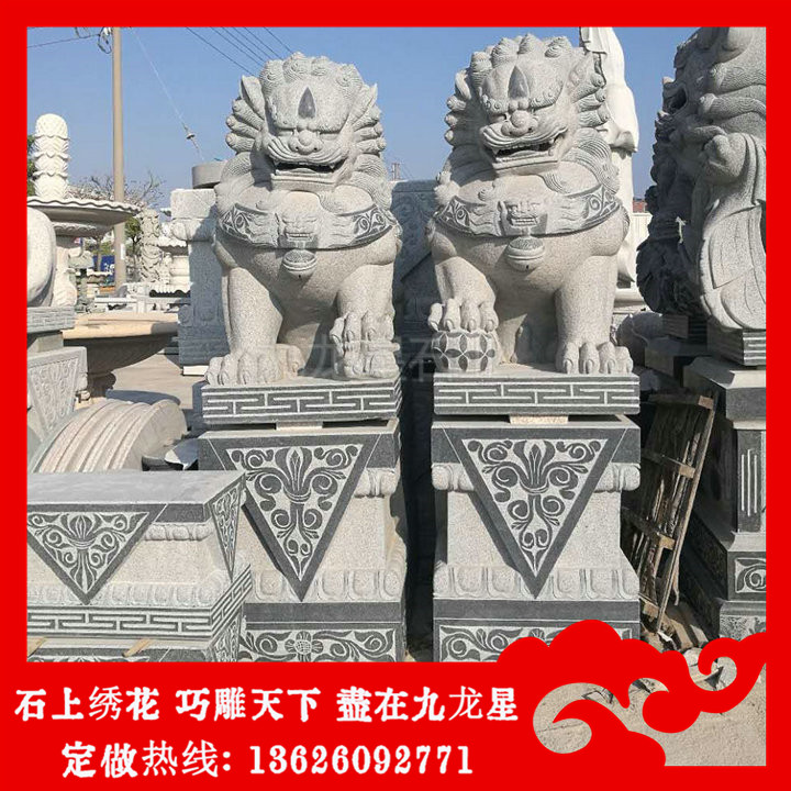 門口石獅子批發(fā)是以石材為原材料而雕塑成獅子的具有藝術(shù)價(jià)值和觀賞價(jià)值的雕塑品。作為漢族傳統(tǒng)文化中常見的辟邪物品。較早的石獅子是東漢高頤墓前的石獅。是漢族傳統(tǒng)建筑中經(jīng)常使用的一種裝飾物,在中國的宮殿,寺廟,佛塔,橋梁,府邸,園林,陵墓,以及印鈕上都會看到它。