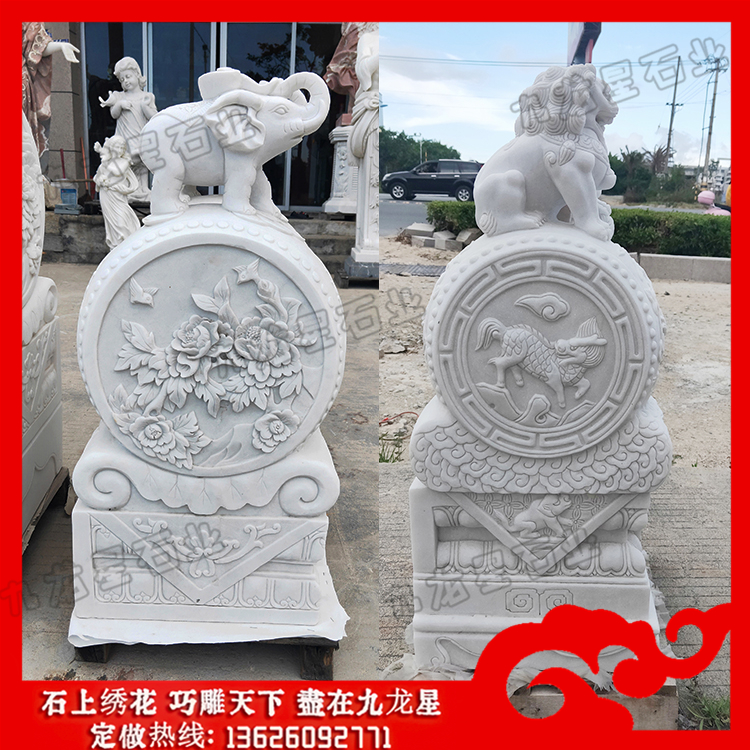 由于大象抱鼓石石雕圖片的文化具有地方文化特色,各地的門墩?qǐng)D片樣式都不一樣,這些祠堂抱鼓石是傳統(tǒng)建筑中裝飾雕刻的一員,是世界上獨(dú)特的民間文化藝術(shù)。一塊石頭,太多的內(nèi)涵;一段歷史,太多的故事。因?yàn)樗陂T口,它將主人的各種心愿,各種企盼都雕刻出來(lái);因?yàn)樗陂T口,各種辟*的圖案都有,就是龍生九子、輔佐辟*也都雕刻出來(lái);因?yàn)樗陂T口,民間的傳說(shuō)、歷史的故事,甚至是主人所能想象出的一切美好都雕刻出來(lái)。