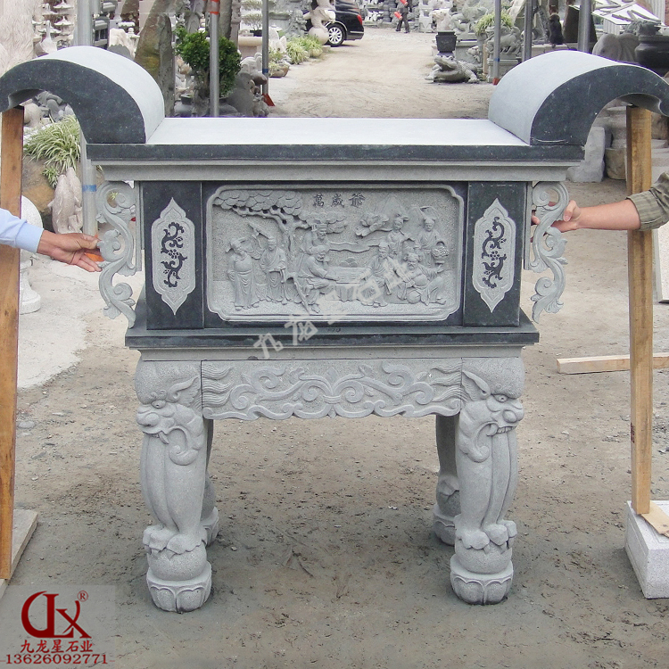 大理石石雕供桌常與天然幾、八仙桌和兩只“獨座”,或一對扶手椅構(gòu)成一組家具。在寺廟佛堂里佛桌供桌更是必不可少的。在供桌的制作材料里,石雕供桌更是以其典雅造型,質(zhì)樸自然,美觀大方,精美的雕刻深得人心,而且石雕供桌也更經(jīng)久耐用。