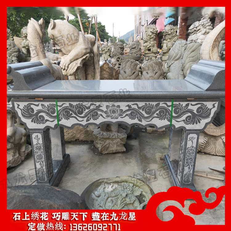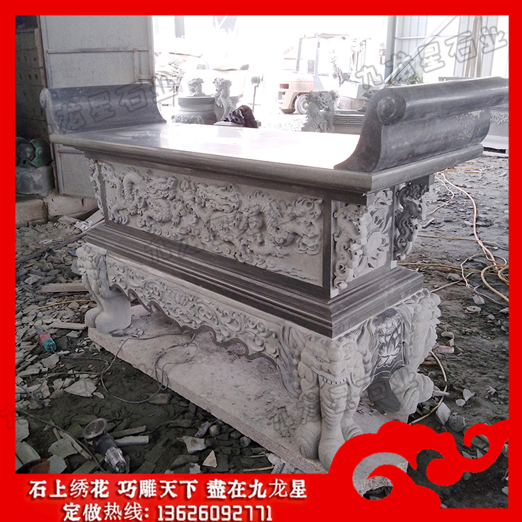 石供桌(寺廟石雕香案供桌 石雕供桌的制作廠家)——九龍星石業(yè)。