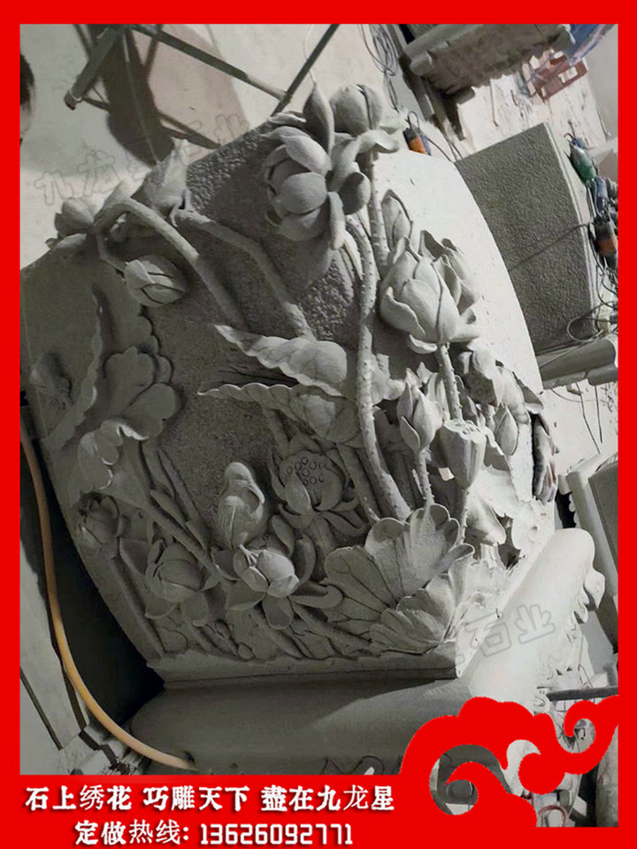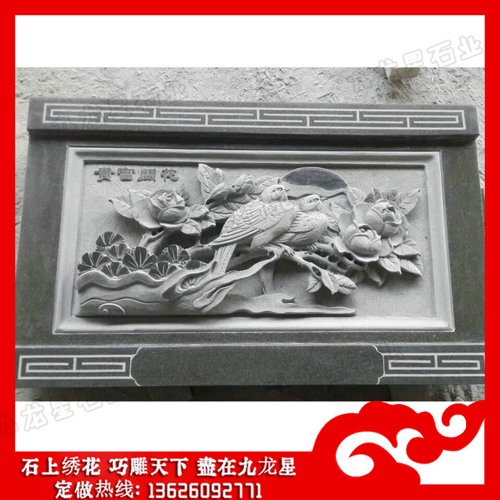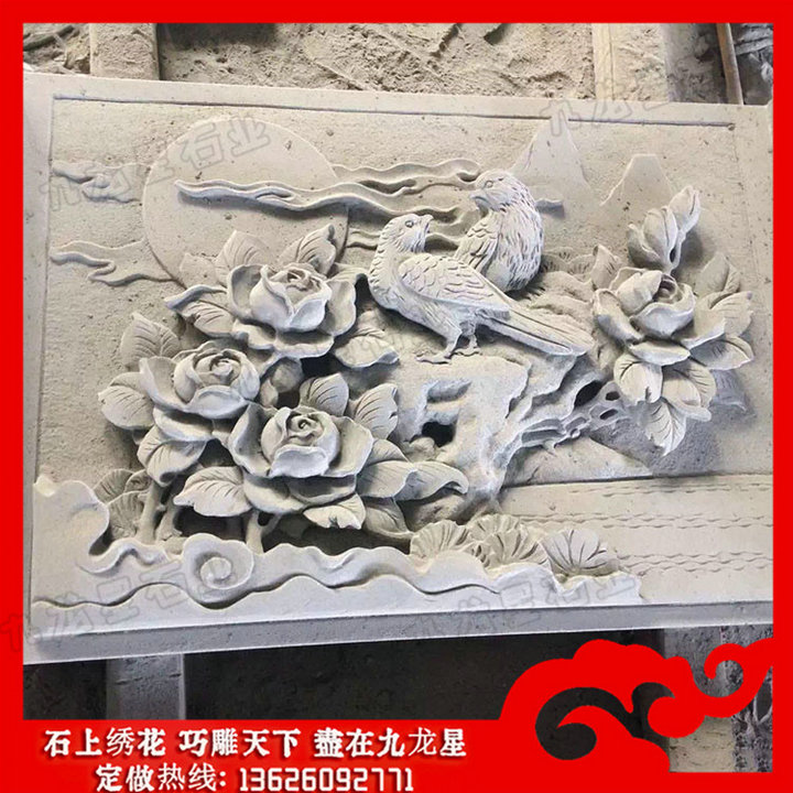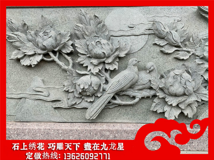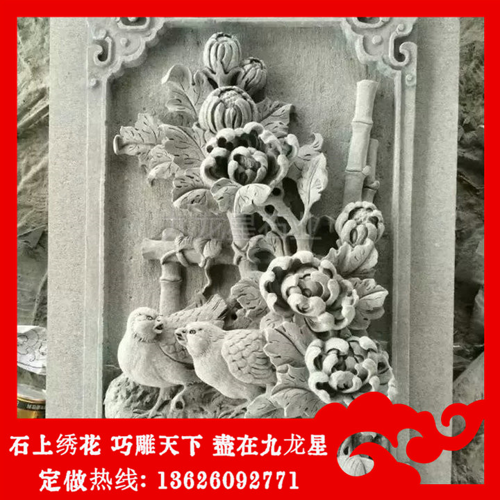 青石浮雕花開富貴圖片