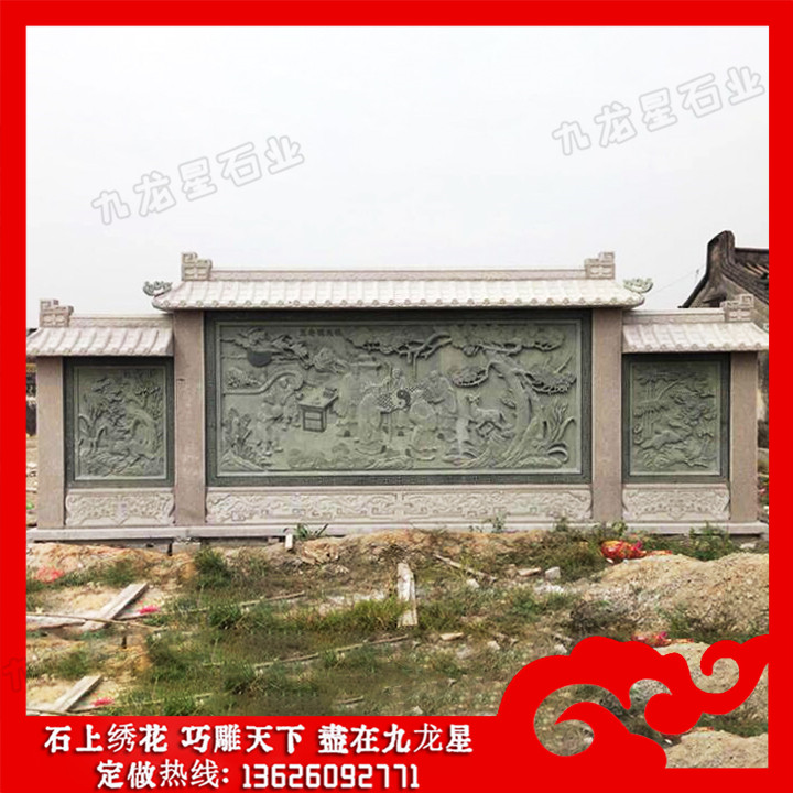 寺院照壁影墻(石雕照壁迎門墻 青石石雕照壁價格)——九龍星石業(yè)。 現(xiàn)在制作的石雕照壁迎門墻一般是花崗巖主題,浮雕部分有青石浮雕和紅砂巖浮雕,深綠色的青斗石雕刻主要浮雕部分,各地寺廟,處處可見精美雅致的壁堵石刻,觀賞這些浮雕吉祥圖案,無數(shù)福氣盡現(xiàn)其中,從古跡以至新廟,青石石雕照壁石刻可以印證、中國吉祥圖案的傳統(tǒng); 從舊作到新品,雕浮雕照壁、壁堵石刻經(jīng)由昔日浮雕而成為近代透雕的常用手法,鏤空浮雕、突出、立體等雕刻技藝已成為現(xiàn)代寺廟裝飾的潮流,以致于、無處不施雕,無處不上繪,無處不題名"。