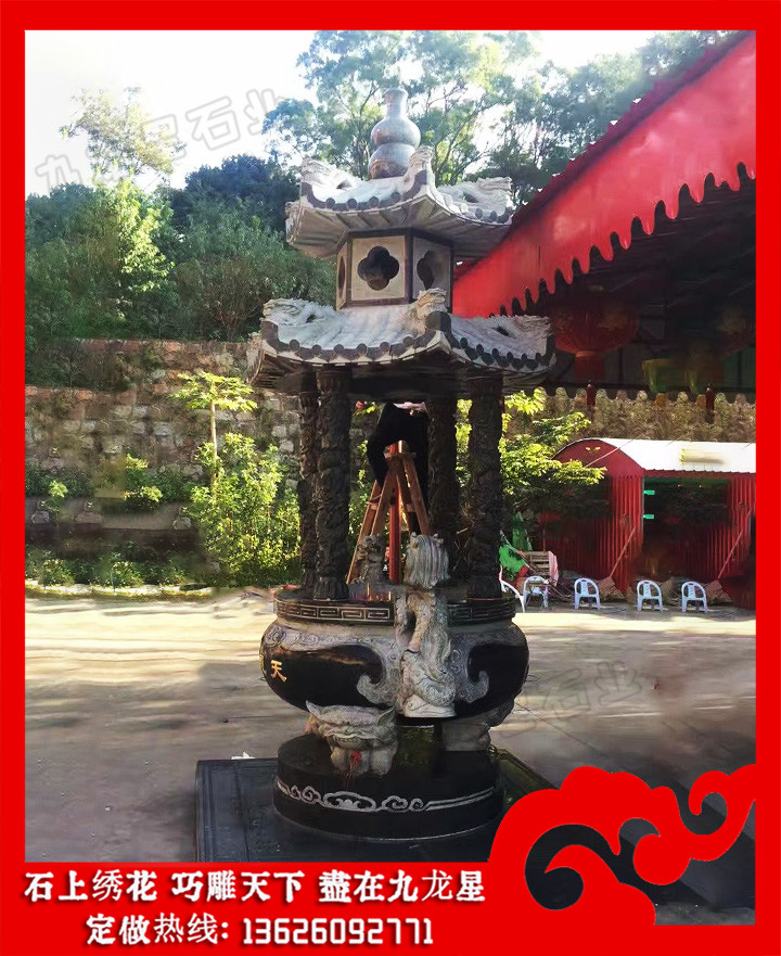 石雕香爐(寺廟室外石雕帶蓋香爐 大理石香爐石雕)——款式很多,可致電九龍星石業(yè)咨詢。