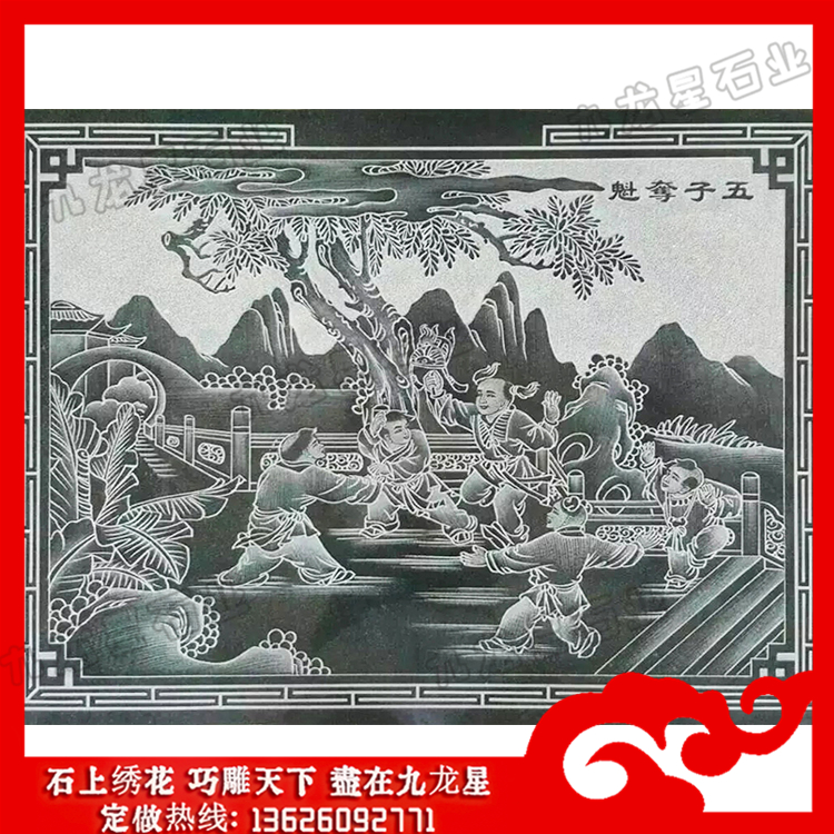 石雕線雕(石材線雕花圖片大全 石雕線雕影雕壁畫)——九龍星石業(yè)。