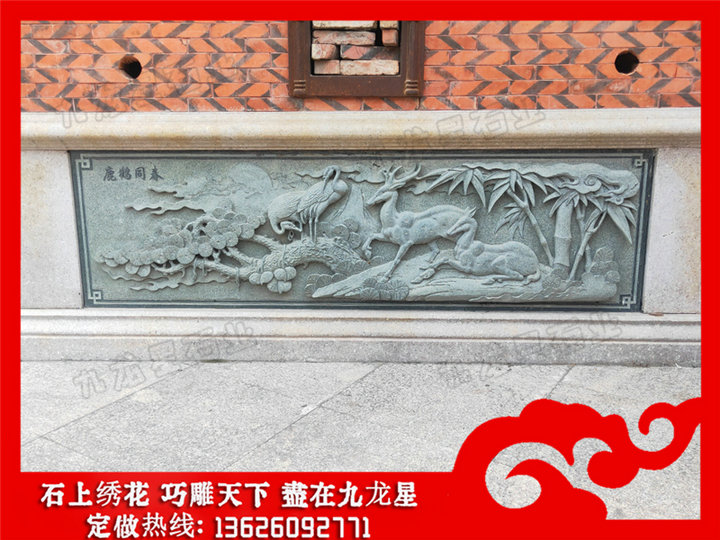 青石浮雕多少錢一平米?青石浮雕是目前寺院宗祠使用較為頻繁的一種雕刻方式。一般青石浮雕有分外墻墻面的浮雕,也有室內的青石浮雕,大多數(shù)祠堂青石浮雕會以一些花鳥動物為主,首先介紹動物類的:例如雕刻鶴的圖案,代表了長壽,象征著祠堂香火源源不息的意義;雕刻麒麟、龍之類的神獸,代表了高貴、仁慈、尊嚴等意義,麒麟有踏寶或者送子圖案,一般一名字代表其寓意。因為雕刻圖案種類的多種多樣,所以青石浮雕多少錢也會隨著雕刻圖案的難易程度而變化。青石浮雕多少錢一平米,可直接致電提供您的定做需求,我們將為您誠信誠心報價!