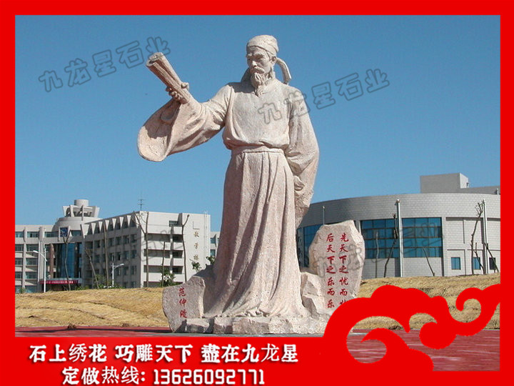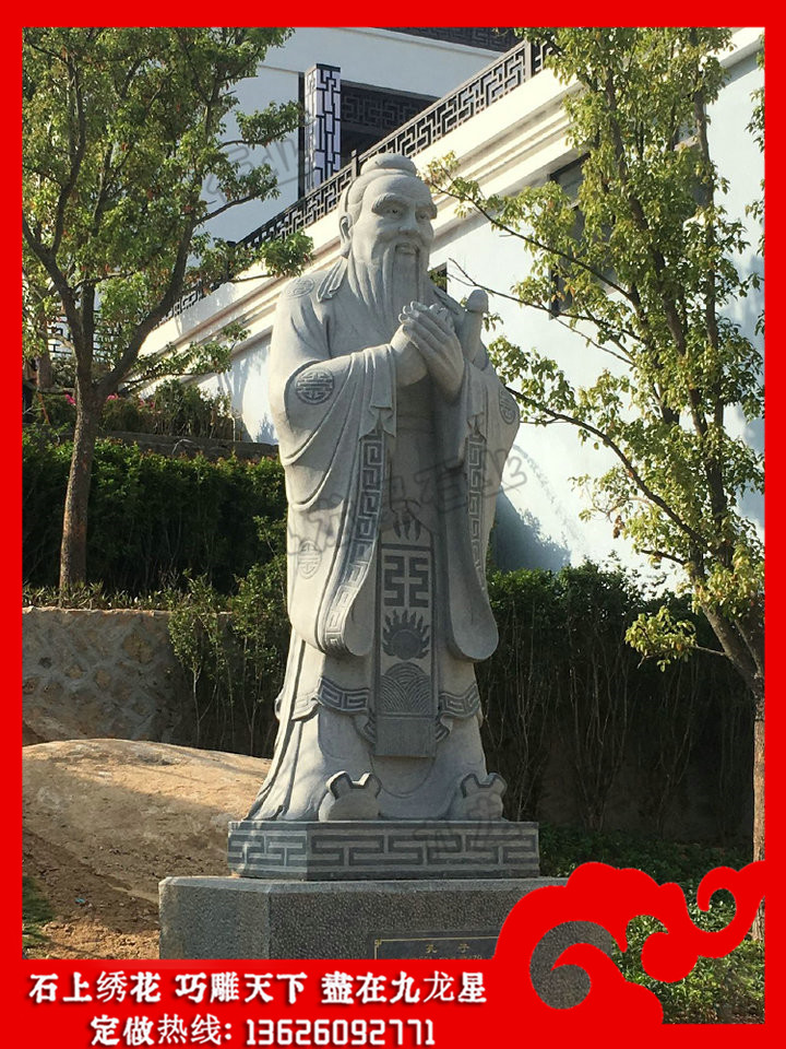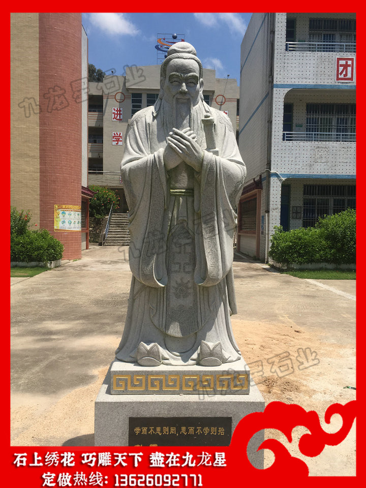 校園人物石雕的人物雕刻實際上來源于人們對于名人,偉人的一種欽慕之情,在古代的學堂,孔夫子就是擺放在教室的,以前是以一幅畫來展示,后來人們?yōu)榱烁尤?,更加細致,更加具體的了解到孔圣人,所以人們開始把他做成石雕,木雕,玻璃鋼雕,泥塑,樹脂雕等等。在西方,人們開始的人物大多以大理石來加工的,特別是后期在美術方面,大部分采用了石膏來代替石雕作品,讓雕刻品更加的潔白無瑕,但是石膏的作品穩(wěn)定性和耐久度并不能令人滿意,所以白色的漢白玉石雕一度成為代替石膏作品擺放在室外的一種重要裝飾工藝品,而漢白玉的石雕人物雕塑作品算是校園石雕中非常重要的一個組成部分,用細膩的雕刻手法完全可以還原人物的各種動作表情,并且不會顯得不夠自然。