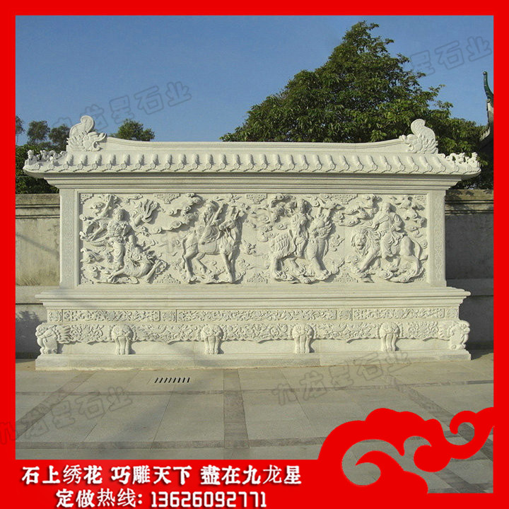石材浮雕(大理石浮雕圖片 大理石材浮雕壁畫廠家)——九龍星石業(yè),工藝精湛。 大理石浮雕圖片要表現(xiàn)出意境,就有他自己的語言,大理石浮雕圖片的形體和空間是浮雕最重要的語言,所為我們口中所說的浮雕形體也就是浮雕的外形的雕刻工藝,用我們的雙眼去捕捉這一物體的最基本的外輪廓特征。大理石浮雕壁畫的外緣的輪廓線所體現(xiàn)的形體表現(xiàn)得淋漓盡致,我們要想真正的認(rèn)識(shí)浮雕意境寓意,那么我們必須將形和體有效的結(jié)合起來,才能得出一個(gè)完整的知覺定義。