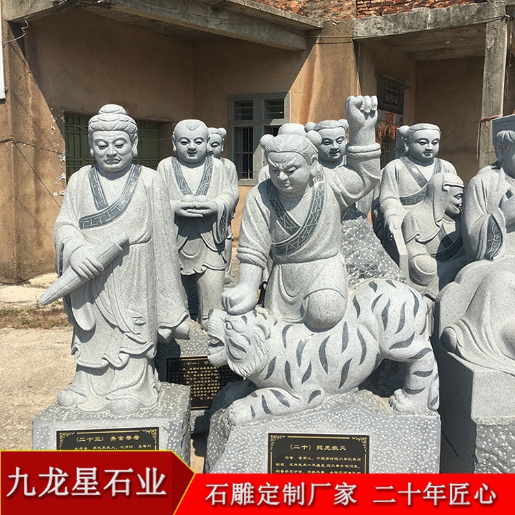 常見石雕二十四孝雕像價格及圖片——九龍星石業(yè),二十年匠心。孝作為中華民族的五倫之首,百善之先,早已深入人必,而石雕二十四孝作為孝 文化的典范,己內(nèi)化到民族性格里,百姓的日常生活與之緊密聯(lián)系在一起。孩提時代,石雕二十四孝就被作為啟蒙讀物,而送個時期所接觸到的讀物又往往對人生的 影響最為深遠(yuǎn);及至成人,為人處世上,或者自己要求自己以二十四孝孝子們?yōu)樾袆拥臉?biāo)桿。