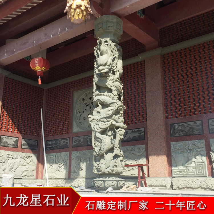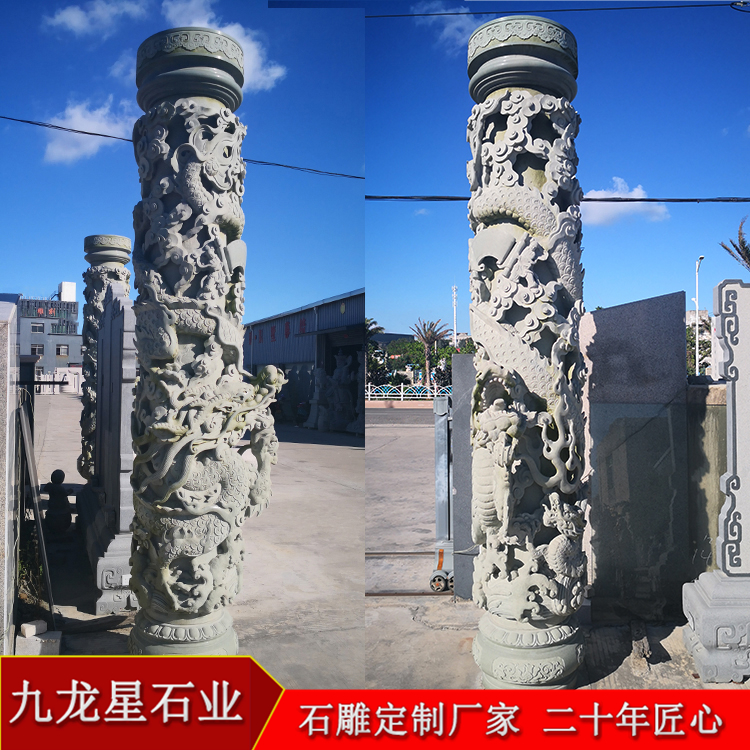 定做祠堂青石龍柱 石雕滾龍柱圖片——九龍星石業(yè)二十年工藝,自帶礦山。