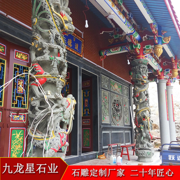 祠堂青石龍柱的出現(xiàn)較早,現(xiàn)在石雕滾龍柱發(fā)展的也很快,較早的青石龍柱出現(xiàn)在清代乾隆中期,即北港朝天宮觀世音菩薩殿龍柱。該時期的寺廟建筑石雕滾龍柱大多是從我國內(nèi)地雕刻廠家制作,經(jīng)過廣東等沿海港口等地運送過來的,這主要與***地區(qū)當時的經(jīng)濟水平較低有一定的關(guān)系。