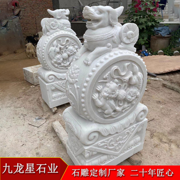 大門前的石雕抱鼓石 青石雕刻門墩抱鼓石——九龍星石業(yè)。