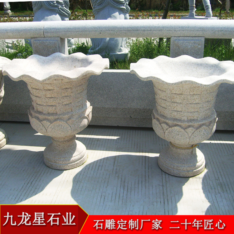 歐式花缽圖片 花崗巖花盆雙層定制價(jià)格——九龍星石業(yè),二十年雕刻工藝。