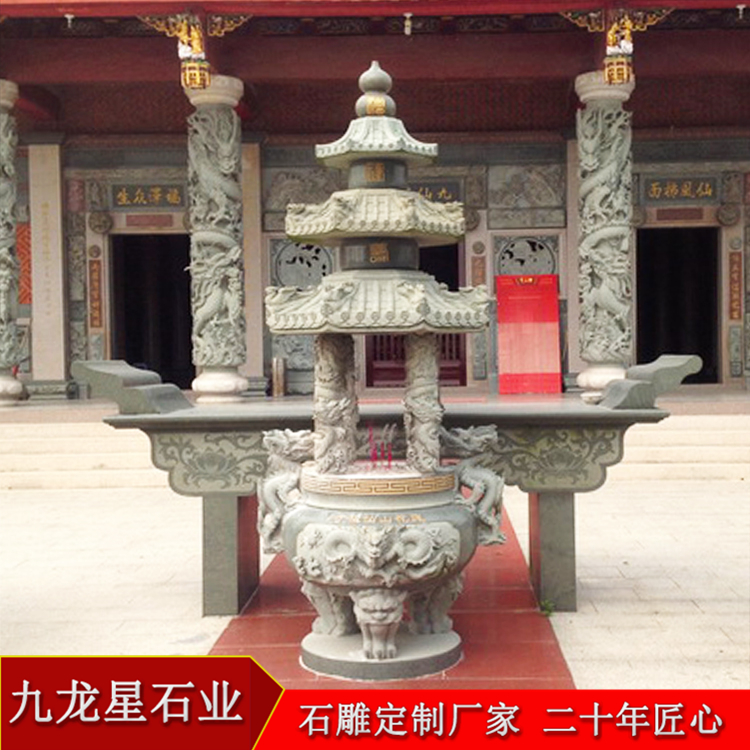 不管是什么樣造型的石雕香爐,人們可以依據(jù)同造型的石雕香爐樣式, 依據(jù)預算以及寺廟祠堂的需求,定制出各種造型。