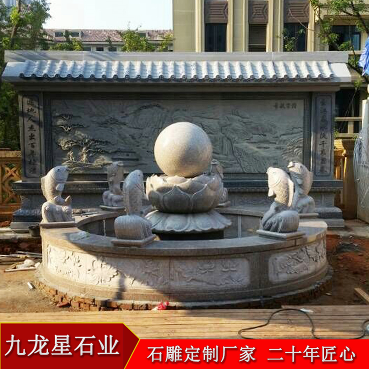 廣場(chǎng)上風(fēng)水球噴泉雕塑擺件——九龍星石業(yè)。