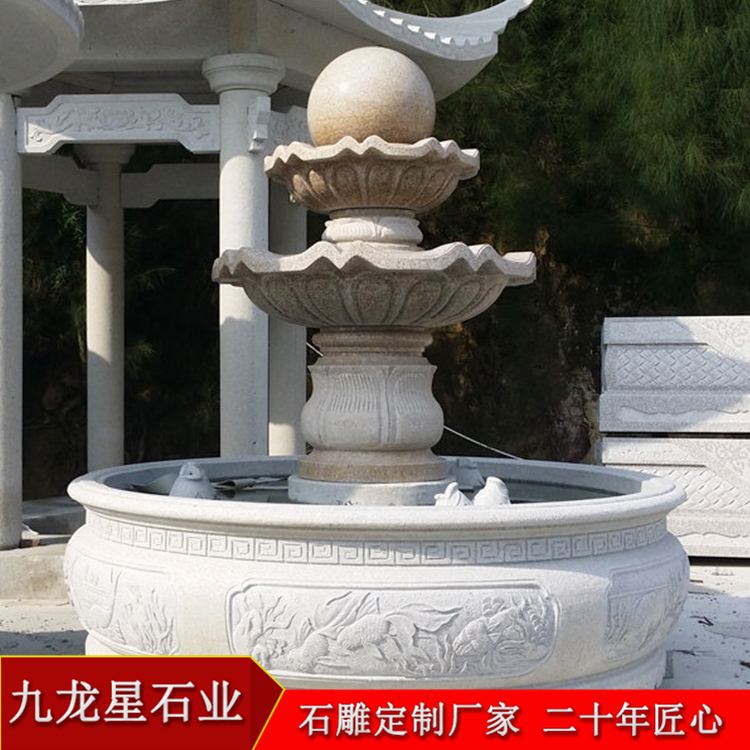 風(fēng)水球噴泉雕塑一般是建筑大廈大門(mén)的廣場(chǎng)或者進(jìn)門(mén)后的小廣場(chǎng),可以做一個(gè)蓄水池,然后擺放這樣一個(gè)風(fēng)水球,給人整體感官比較大氣以外,流水的活動(dòng),滾動(dòng)的石球,讓人覺(jué)得生機(jī)勃勃,而石材風(fēng)水球不停的工作給人一種欣欣向榮的景象。