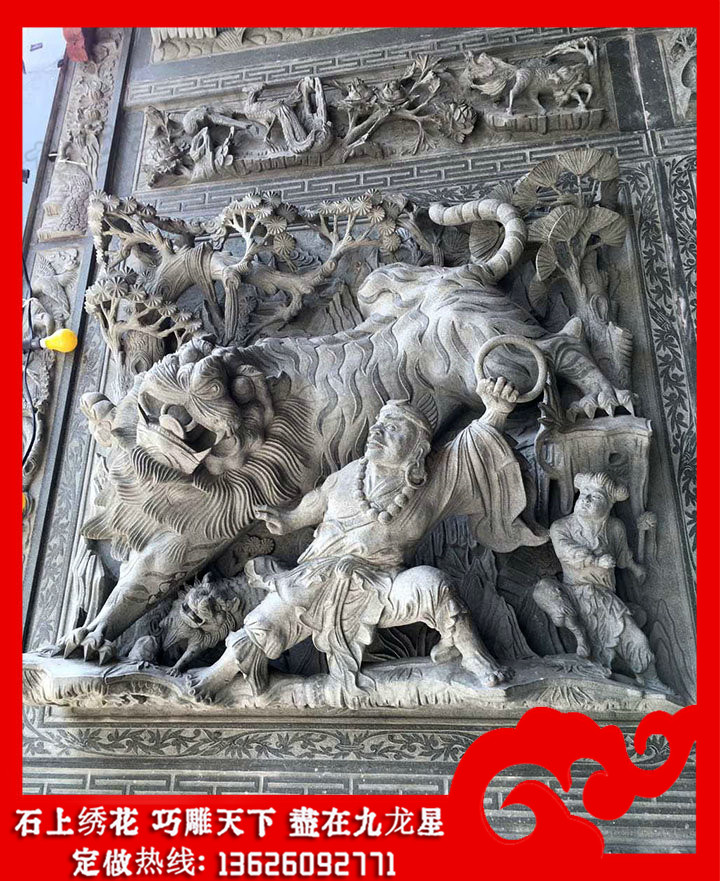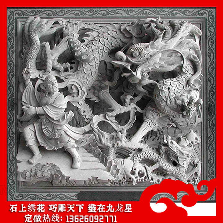 青石浮雕(石雕浮雕壁畫 青石浮雕雕刻廠家)——九龍星石業(yè)。 石雕浮雕壁畫簡單來說就是在石材上雕刻作畫。這樣雕刻出來的浮雕工藝品,不僅能夠更生動(dòng)地表現(xiàn)出圖案,也能夠讓整個(gè)圖案的空間立體感更強(qiáng)。由于石雕浮雕壁畫的制作難度及其雕刻手法非常高端,并且一塊浮雕的制作時(shí)間也相對較長,所以石雕浮雕壁畫的造價(jià)一般都很高。但是其效果也是不言而喻,它能夠讓整個(gè)空間都具有藝術(shù)美感,并且讓墻面避免太對單調(diào)乏味。